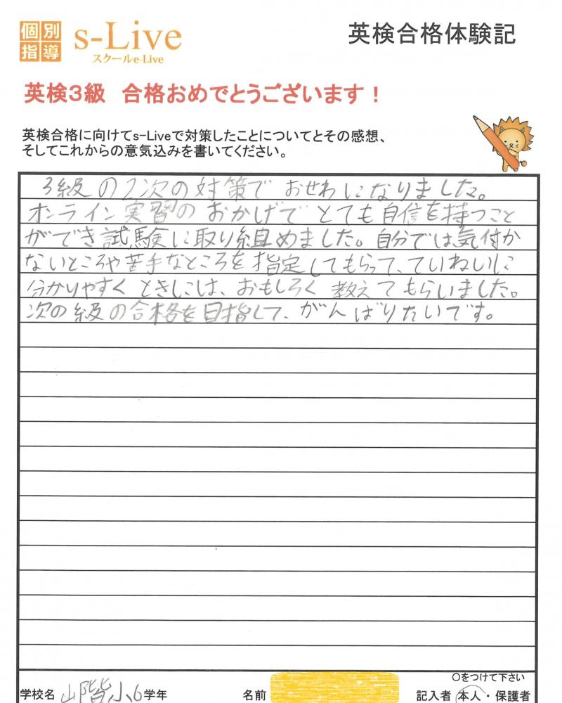 個別指導塾s-Liveきょうと山科校で英検3級合格!